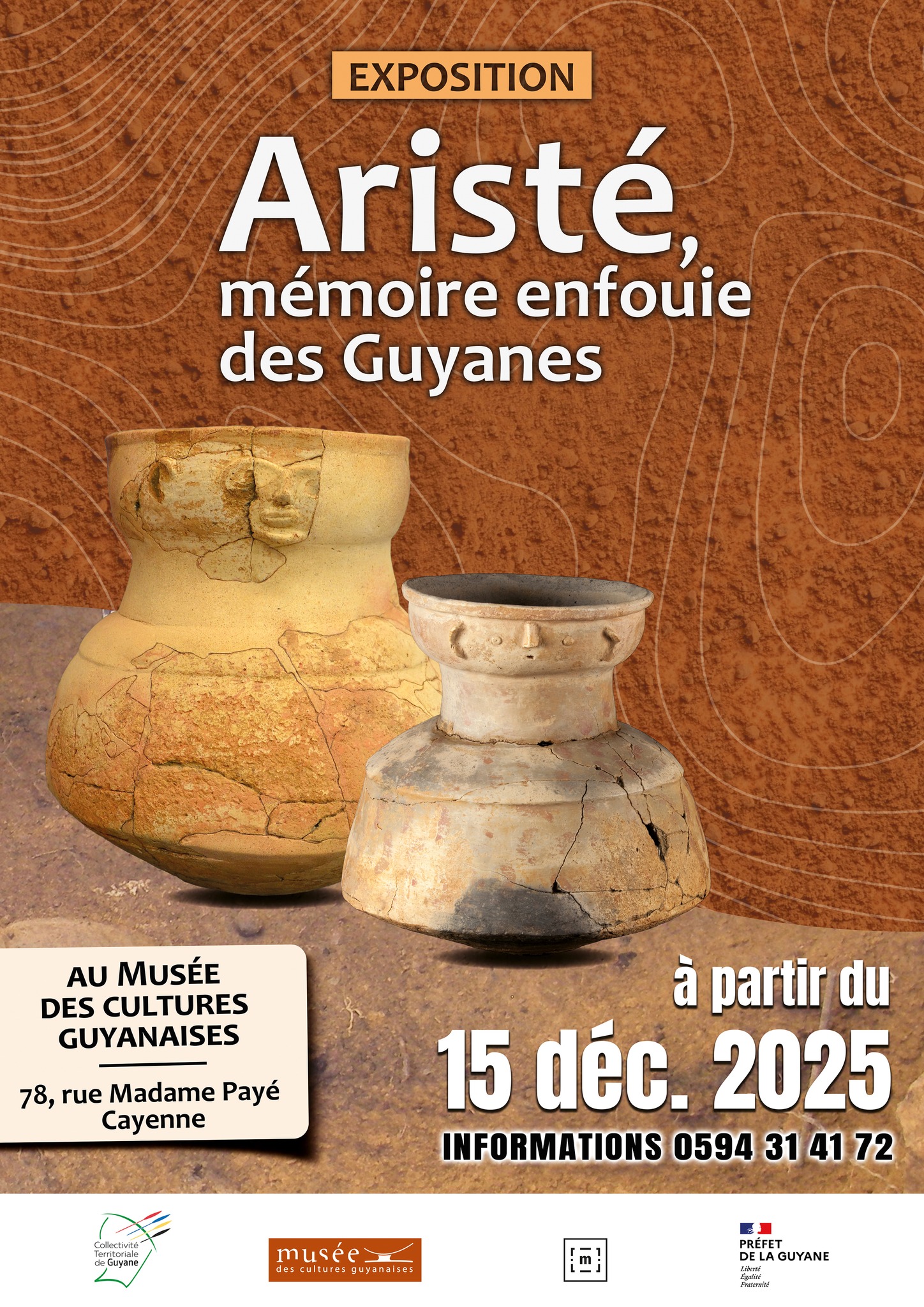 Cette exposition met en lumière la culture Aristé, l’une des grandes traditions archéologiques précolombiennes du plateau des Guyanes. Peu connue du grand public, cette culture s’est développée plusieurs siècles avant le contact avec les sociétés européennes et s’est épanouie le long des zones côtières et fluviales qui aujourd’hui dessinent l’est de la Guyane française et l’État voisin de l’Amapá (Brésil).